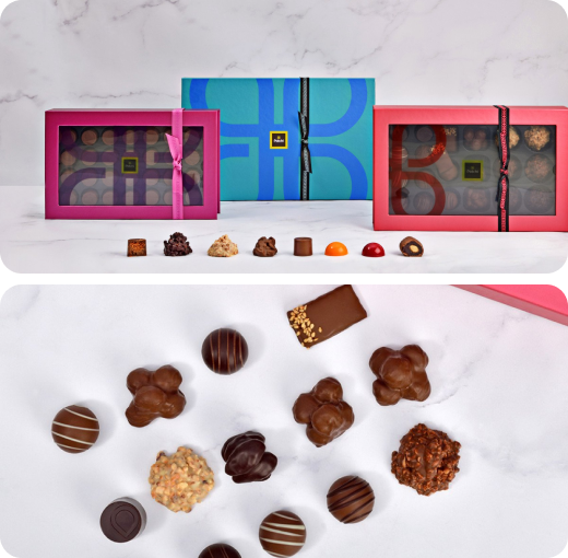 اكتشف عالمًا من النكهات الغنية والمذاقات الفريدة في تشكليتنا المتنوعة من الشوكولاتة الفاخرة معك في كل مناسباتــك حلـي لحظاتـك بشـوكولاتة فـاخـرة من بـروز